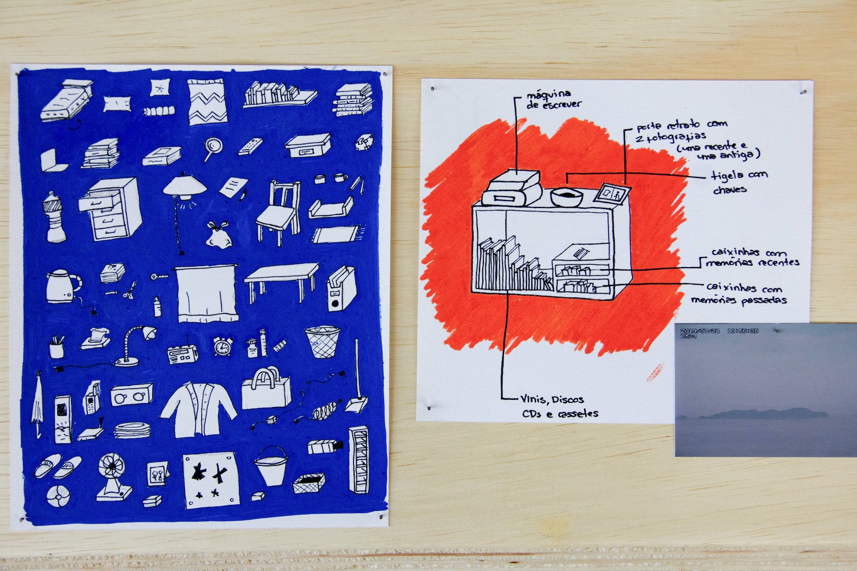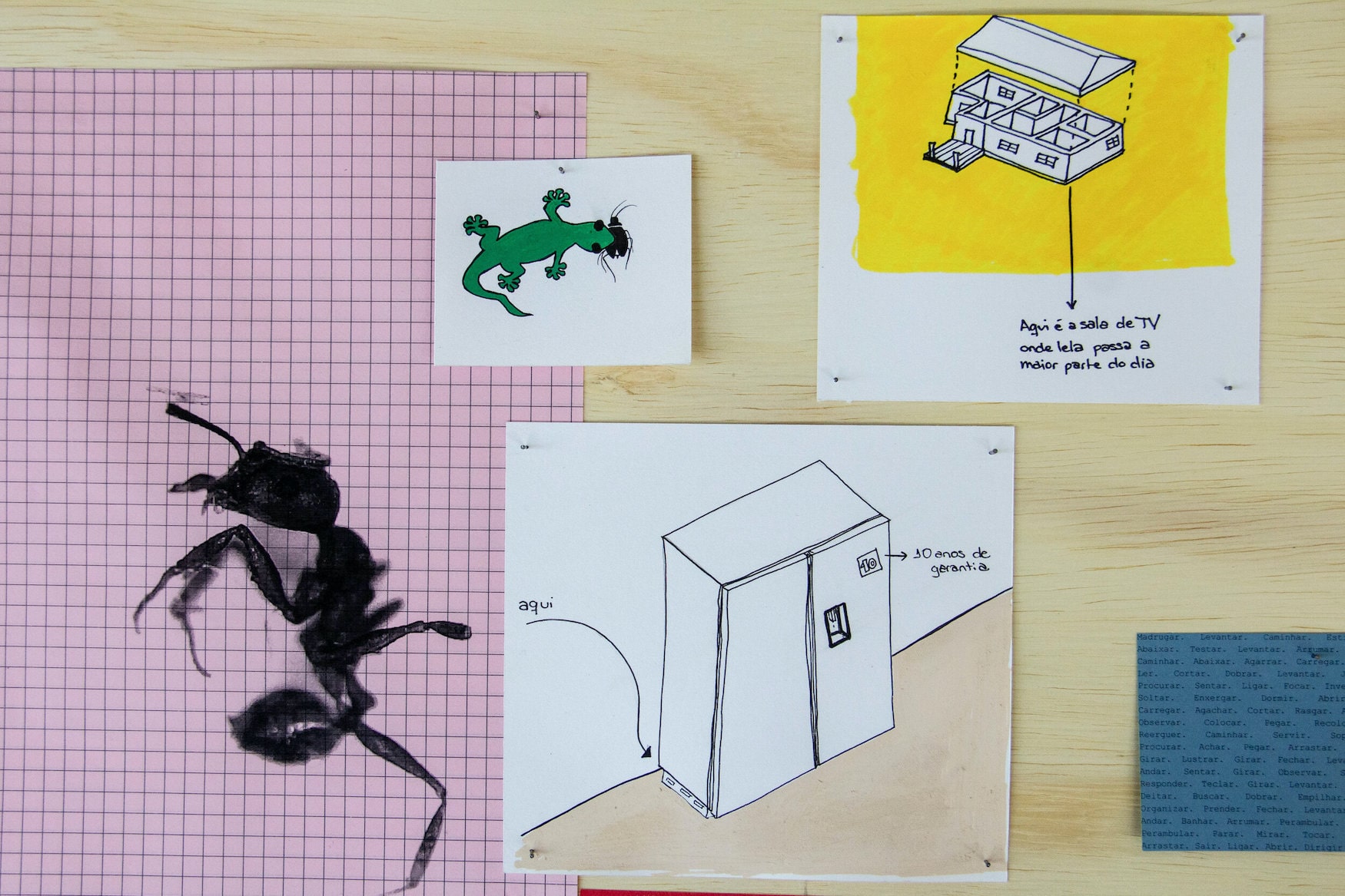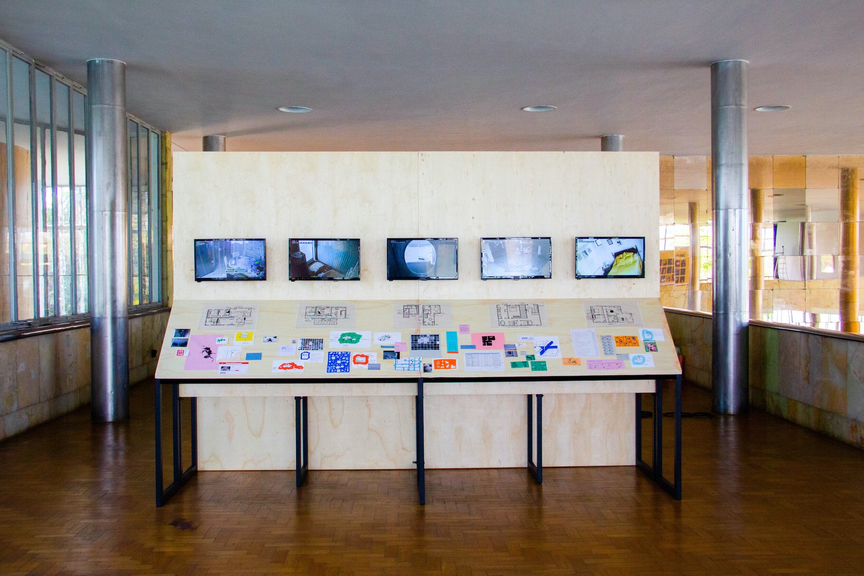 video instalação, desenhos e plantas arquitetônicas