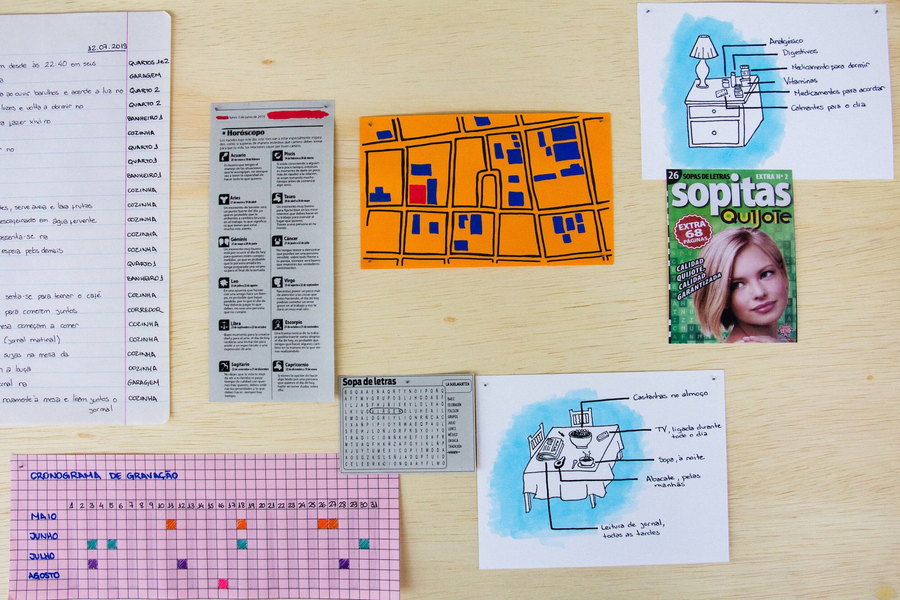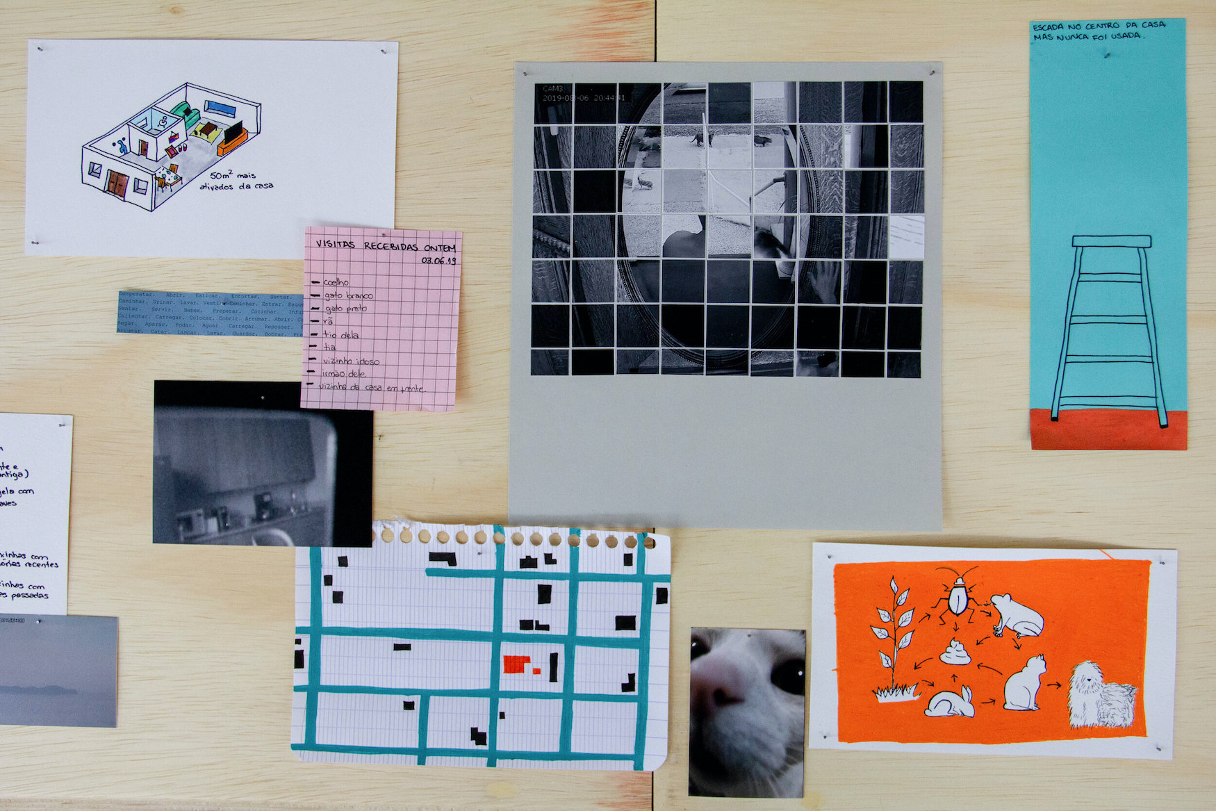 O 1º trabalho da série, apresenta em vídeos, plantas arquitetônicas e anotações, diários íntimos de 5 personagens construídos a partir de imagens domésticas de câmeras de vigilância com livre acesso pela internet.