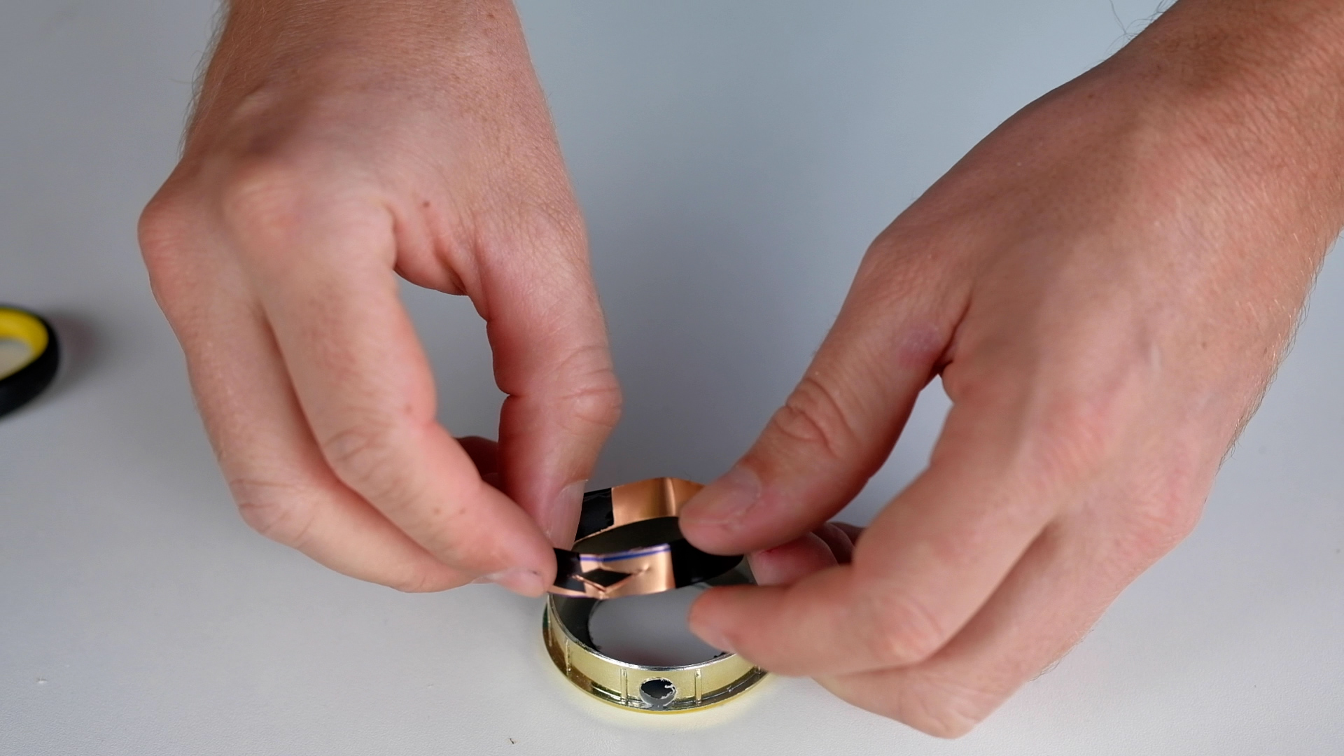 Coloque o círculo de cobre no topo do preenchimento de silicone para que grude.