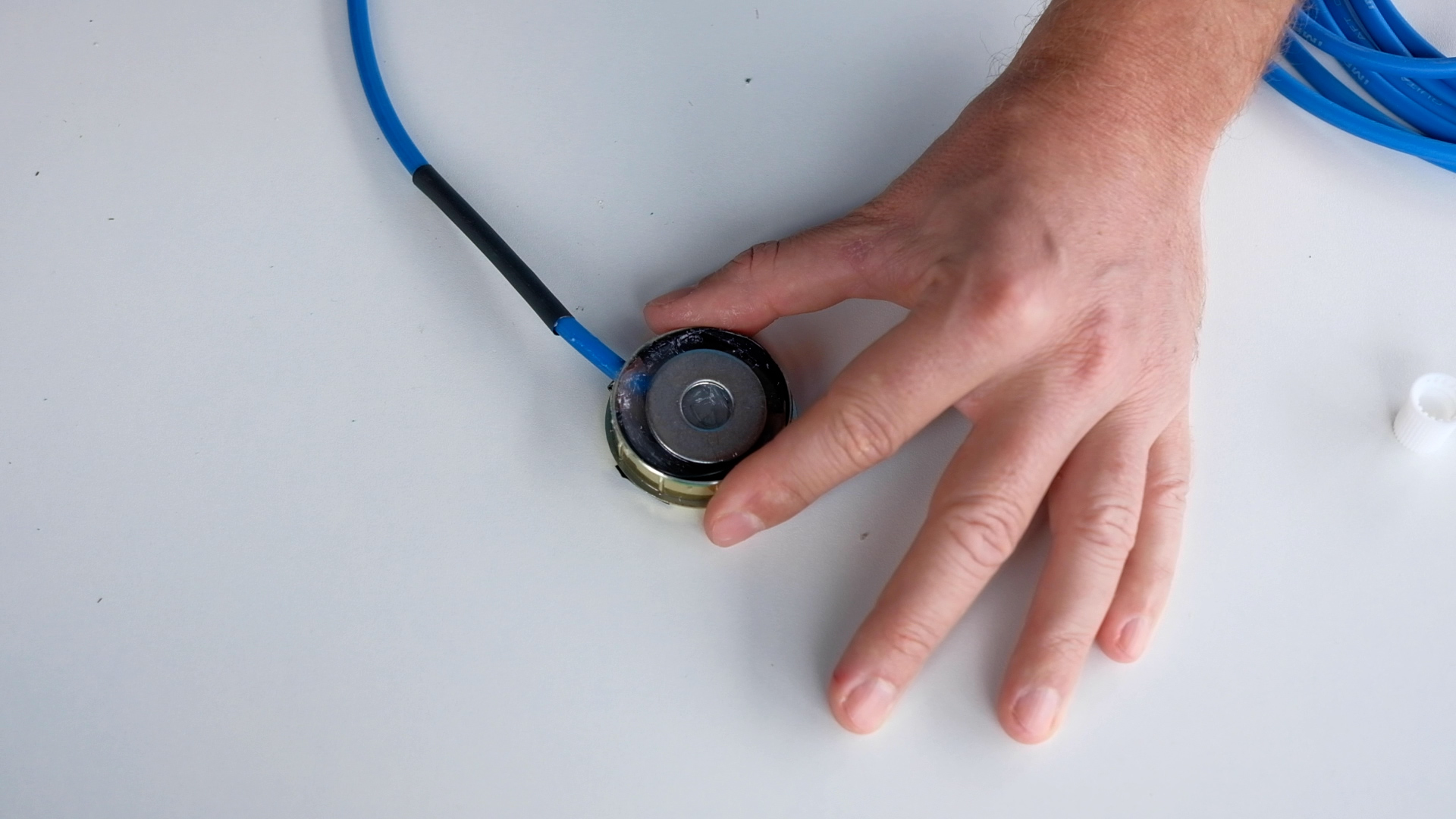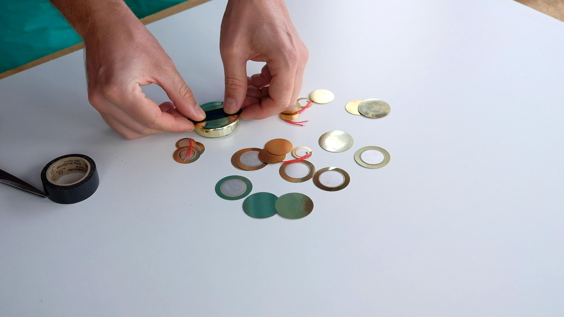 Escolha uma tampinha 1cm maior que seu piezo. No vídeo usamos um piezo de 27mm e uma tampinha de 40mm.