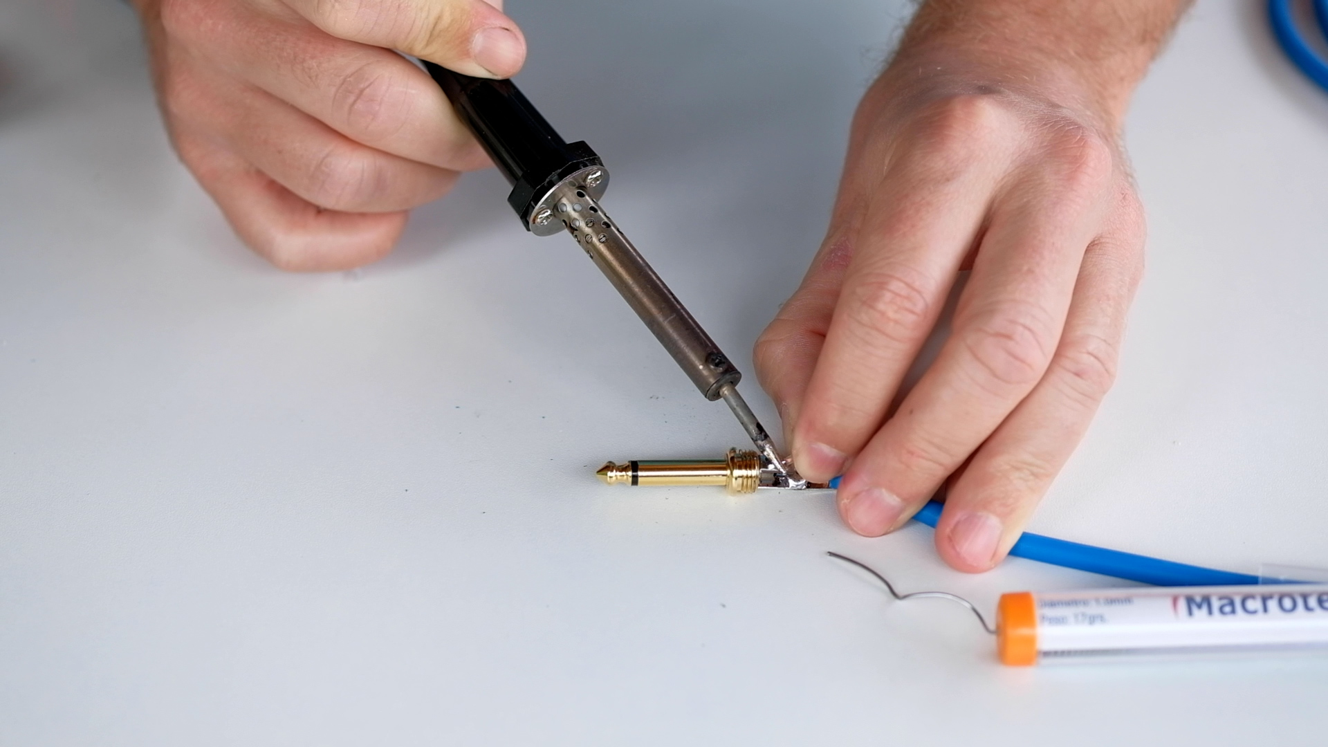 Antes de soldar, coloque termoretratil em ambas vias do cabo, bem como no cabo do mic.