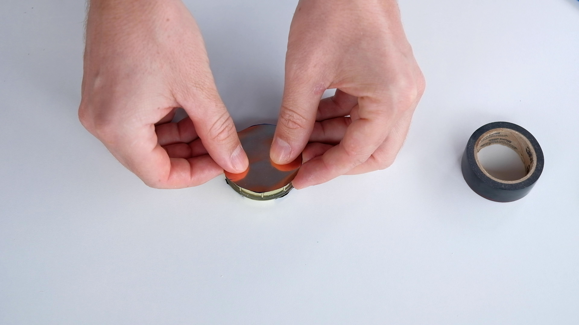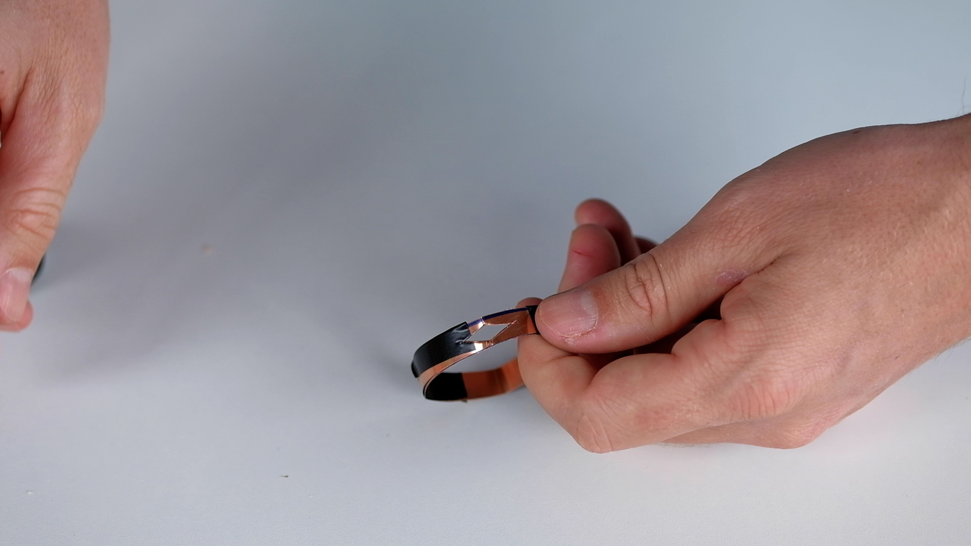 Faça um anel com a tira e envolva a tampinha internamente com essa camada de cobre