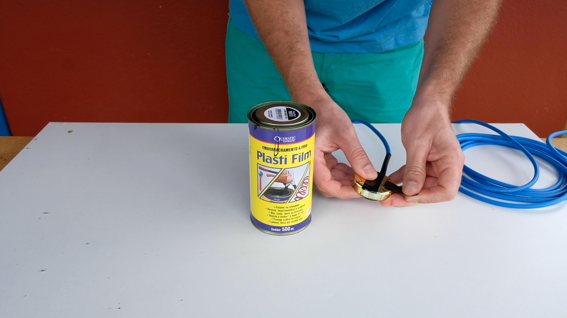 Passe o cabo no furo lateral da tampinha e do cobre e sode ambas as vias.