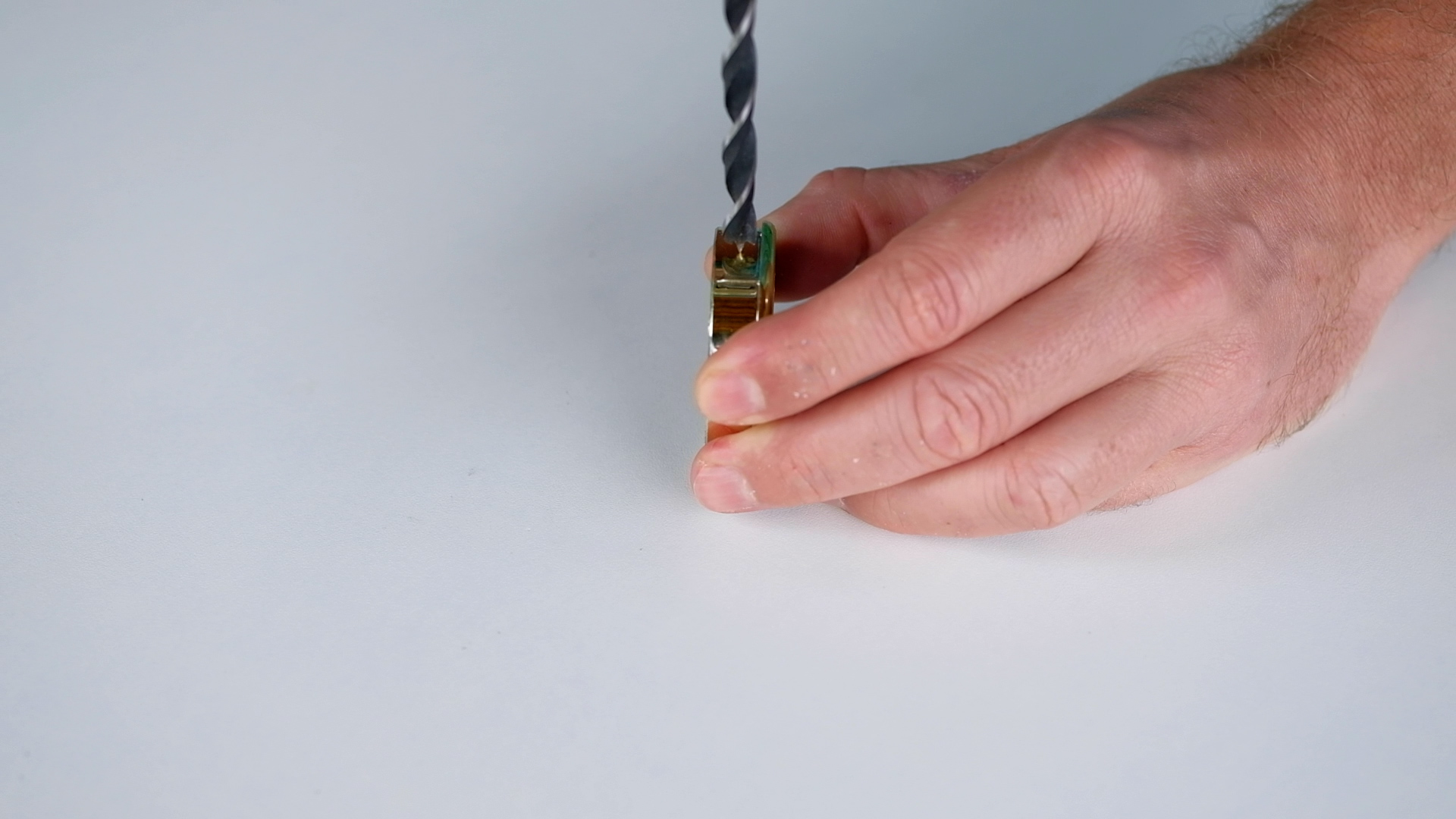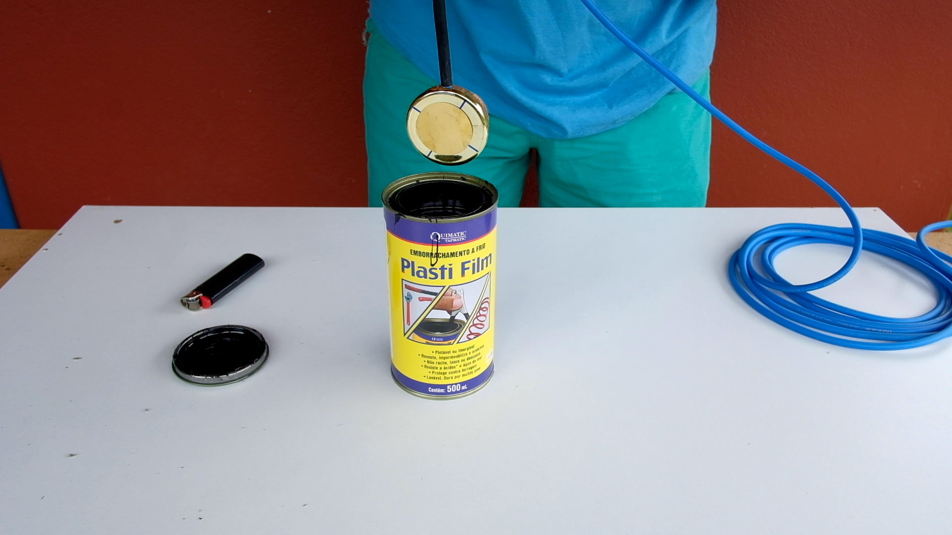 La lateral da tampinha, com uma broca de de 50mm faça outro furo. É por esse buraco que passaremos o cabo do mic.