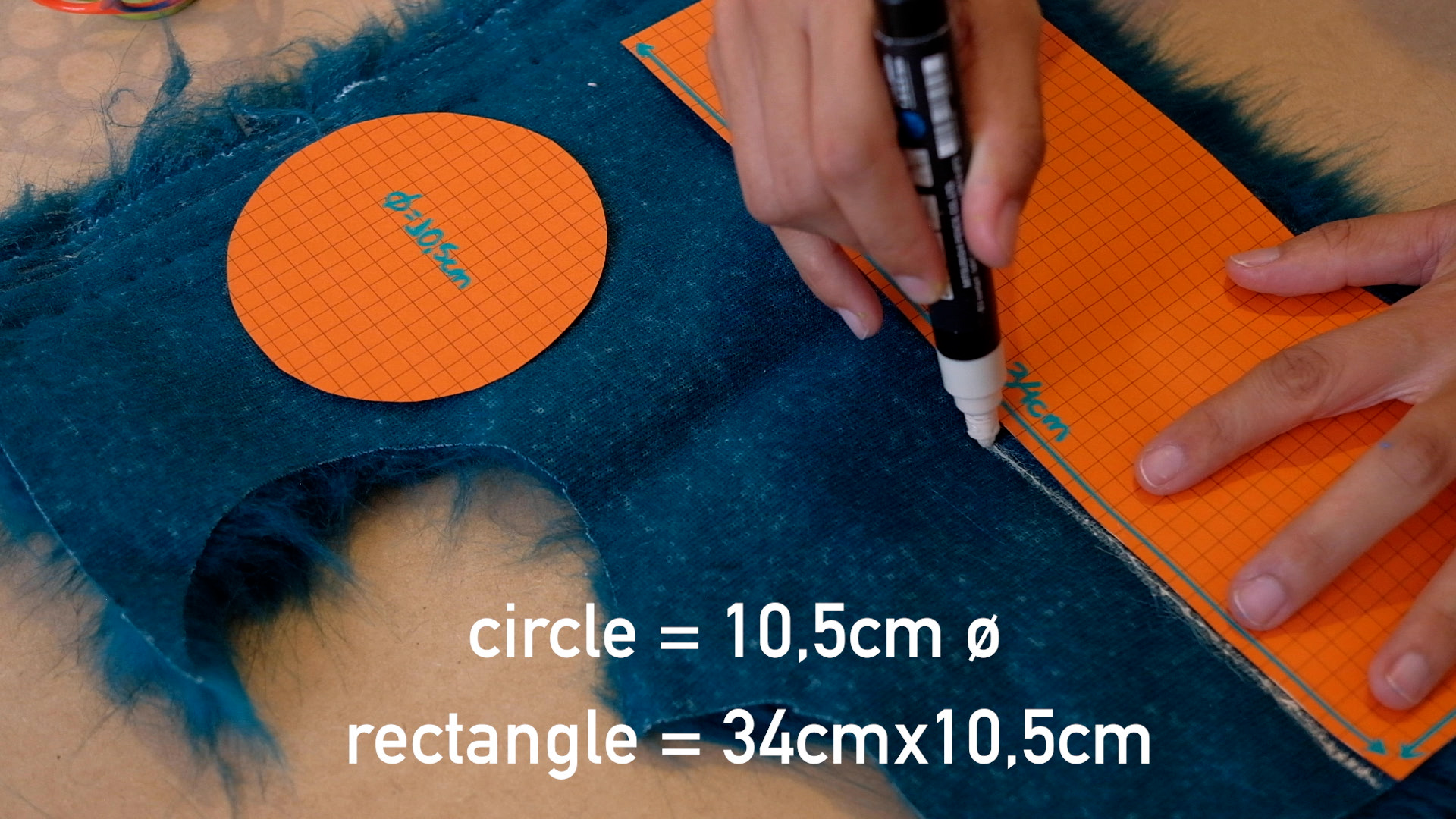 Mark with a chalk or liquid chalk paint marker a circle of 10,5cm and a rectangle of 34cm x 10,5cm