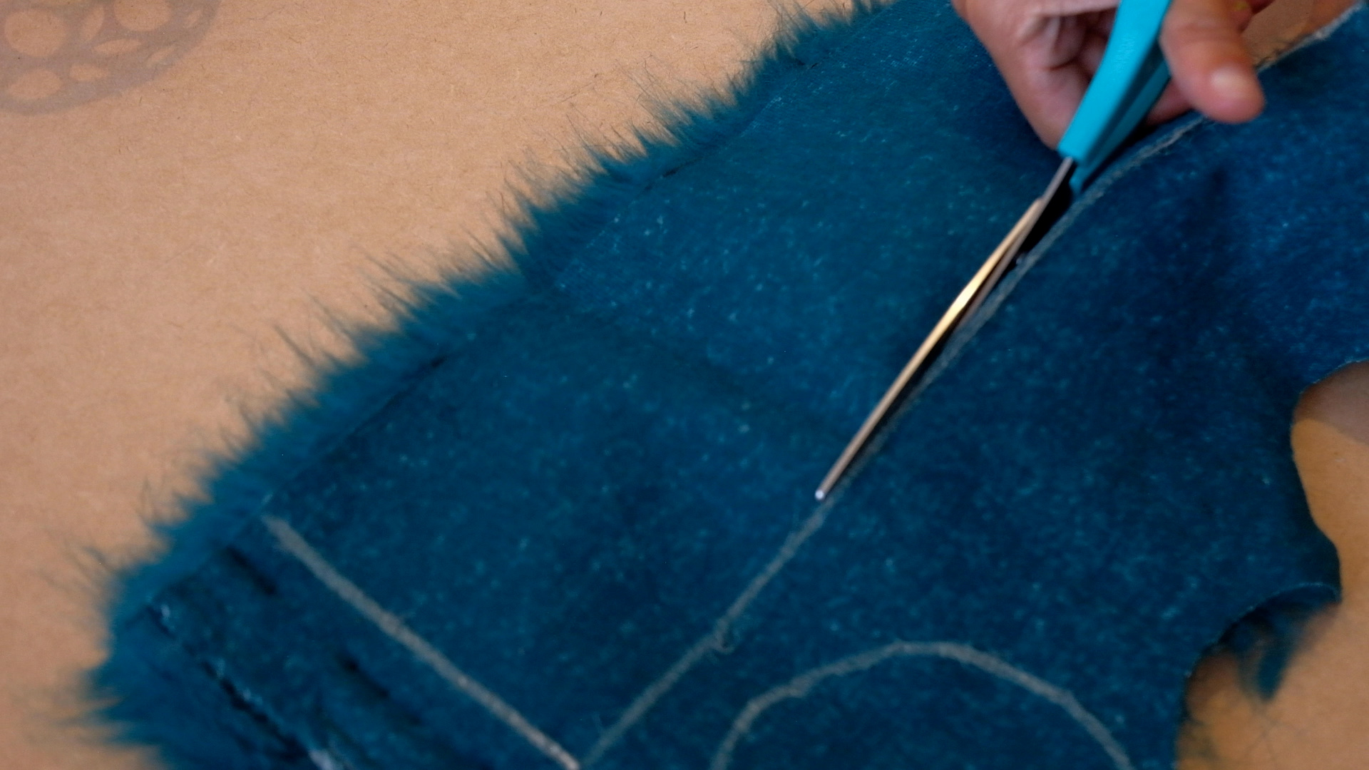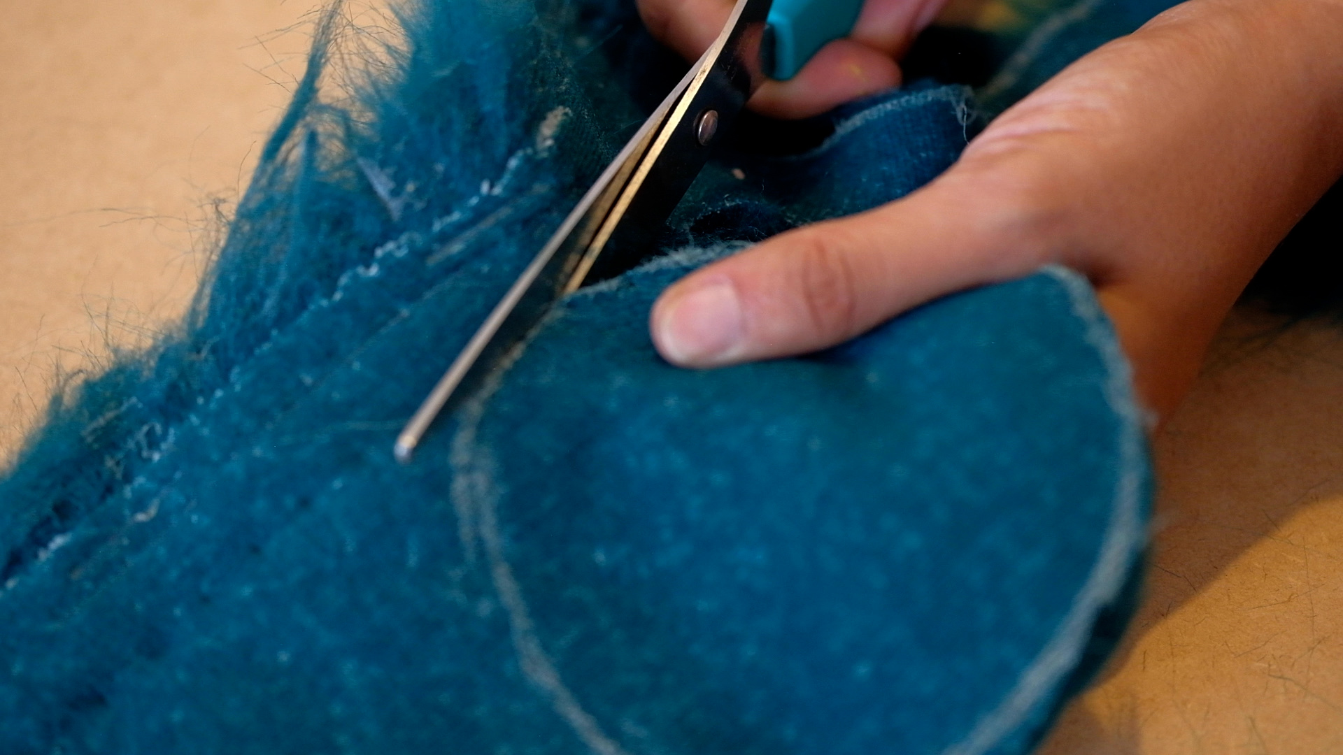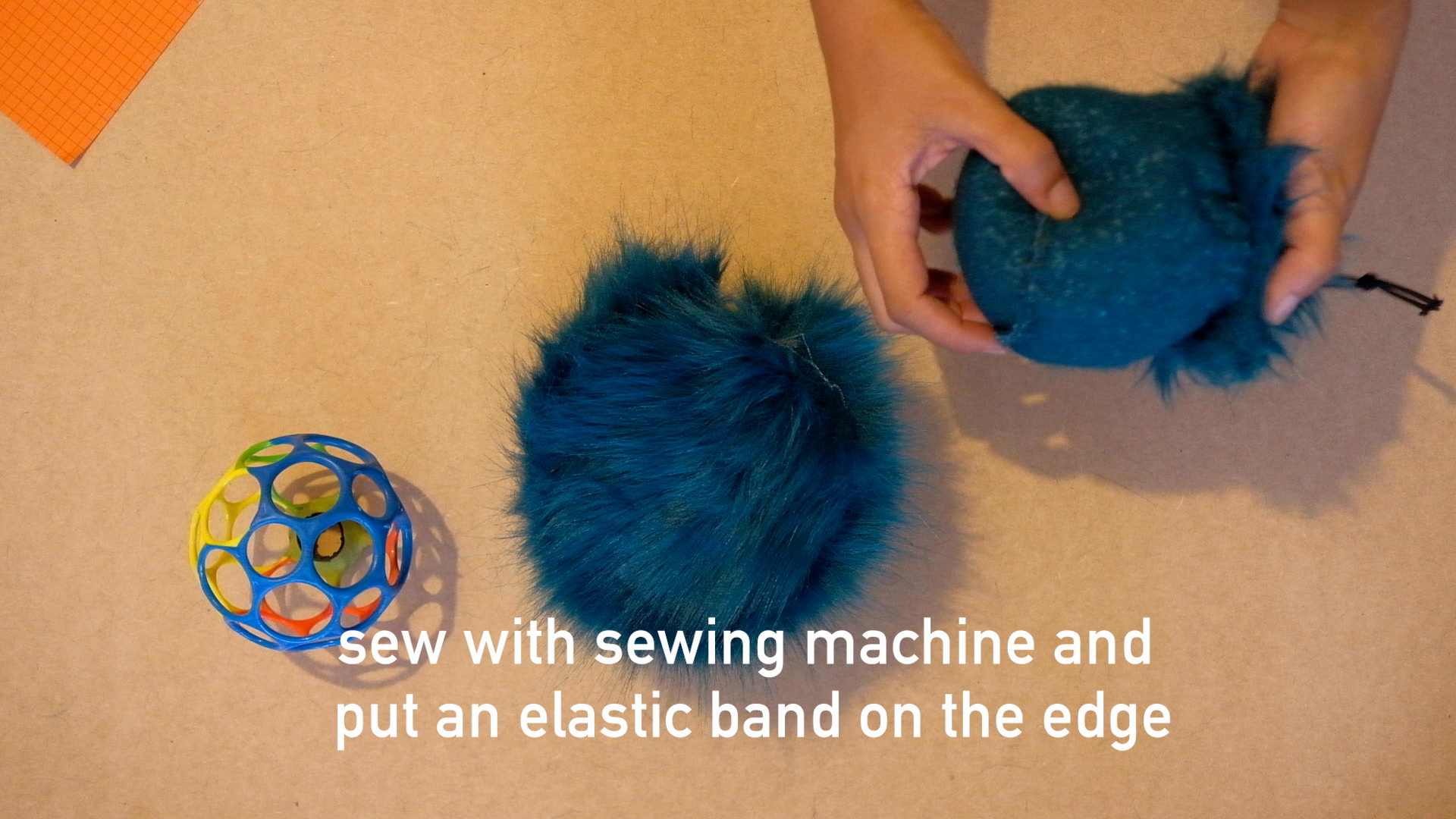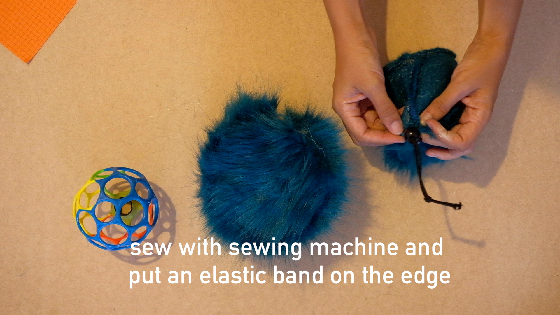 Saw the pieces of synthetic fur with a sewing machine