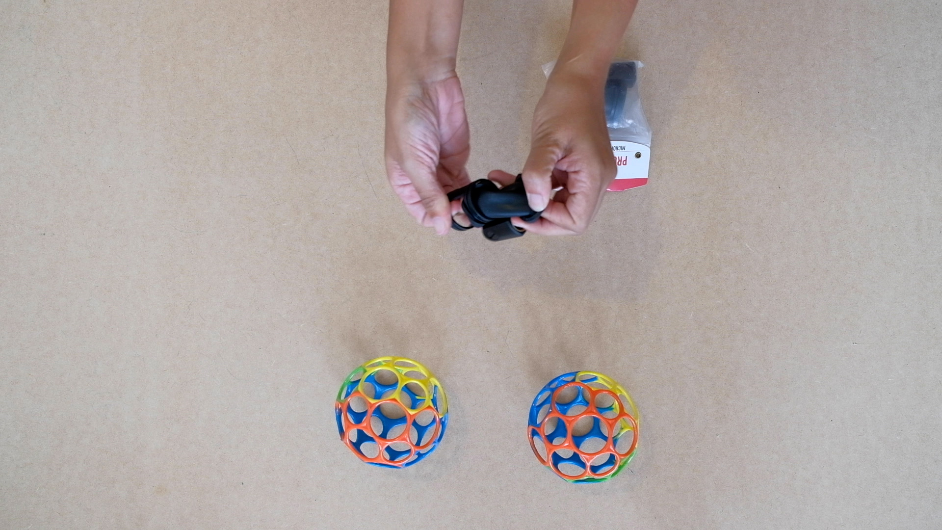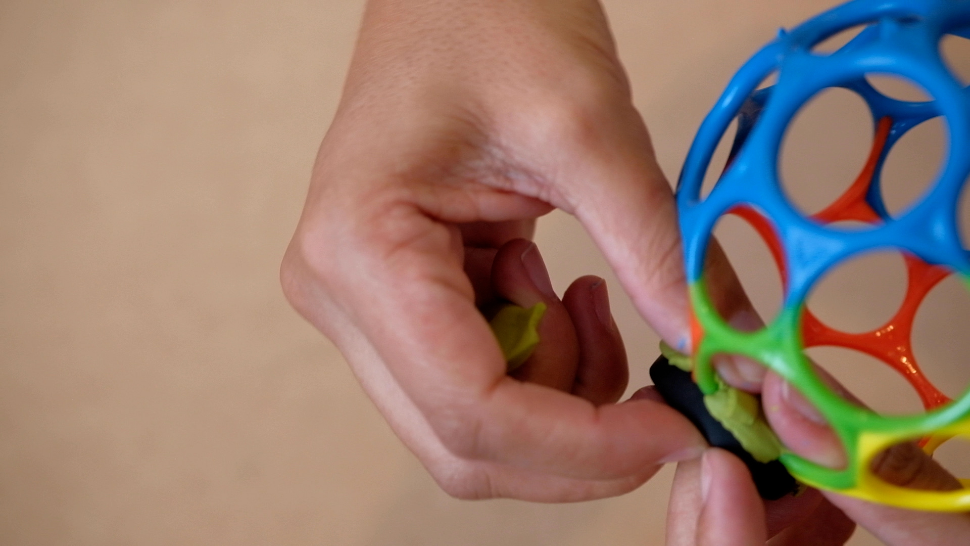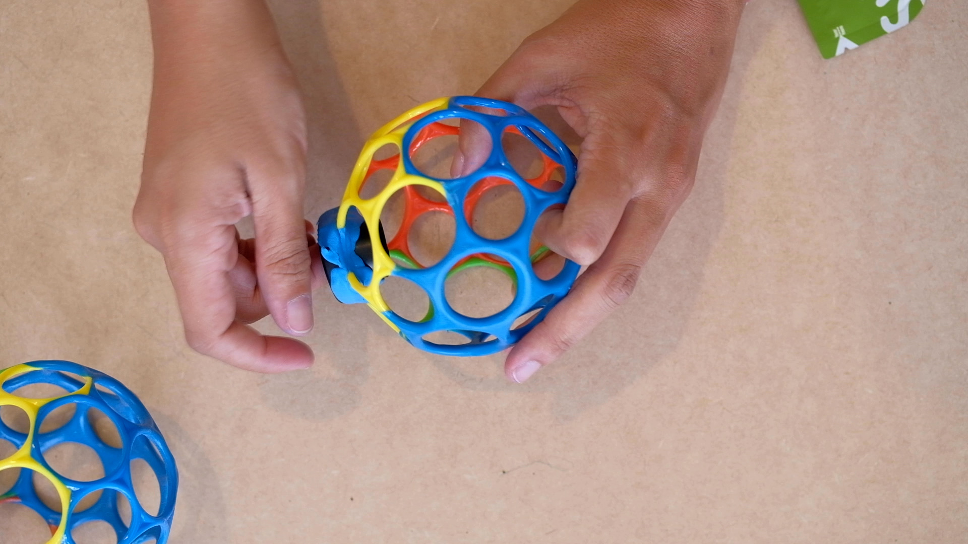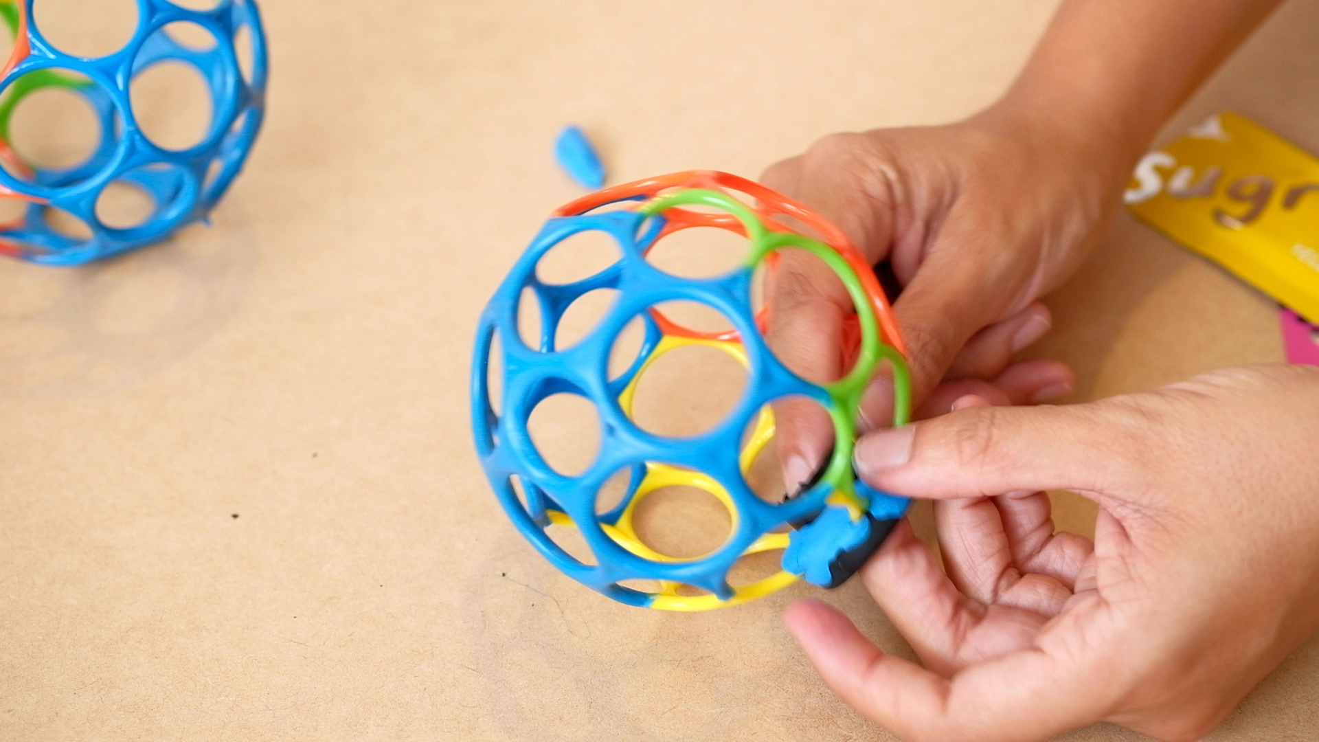 Put each part of the suspension in one of the hole of the Oball